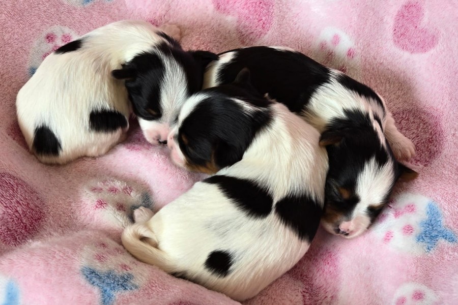 V sobotu 14.3.2026 brzy ráno se po dlouhých přípravách během hodiny a půl narodila 3 kouzelná štěňátka mamince Rozárce a tatínkovi Cobýskovi. Rozárka nás napínala 3 noci, vždycky kolem půlnoci začala hrabat a funět, ale potom usnula a spinkala v posteli na polštáři až do rána. Takže Rozárka plná síly, ale panička úplně mrtvá.
